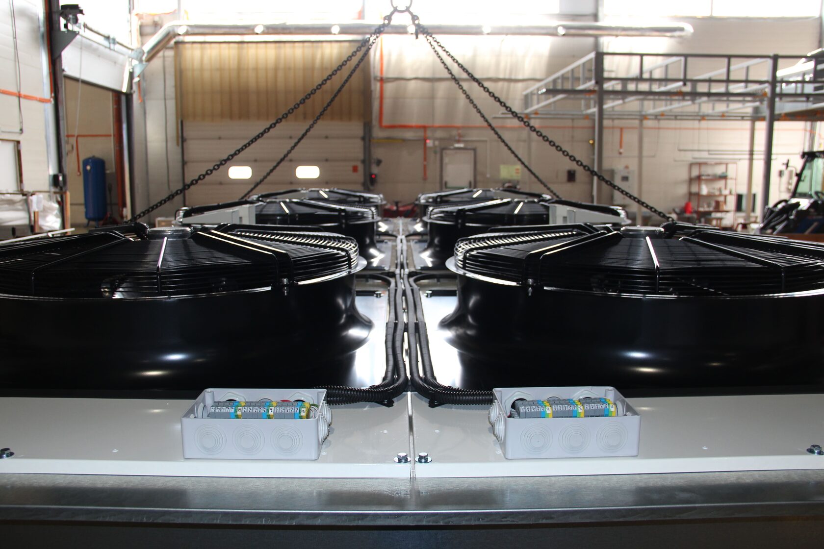 Компрессорно-конденсаторные блоки (ККБ) — это модульные установки, состоящие из компрессора, конденсатора с вентилятором, системы управления и регулирующих устройств. ККБ выполняют роль отвода тепла из холодильных контуров и преобразования газообразного хладагента в жидкое состояние.