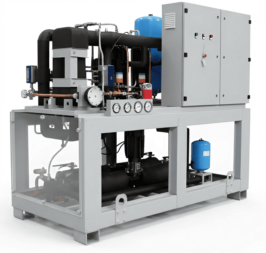 Если обычный кондиционер (сплит-система) — это бытовой прибор, то чиллер — это тяжелая промышленная артиллерия. Это установка, которая не просто охлаждает воздух, а генерирует холод в промышленных масштабах.